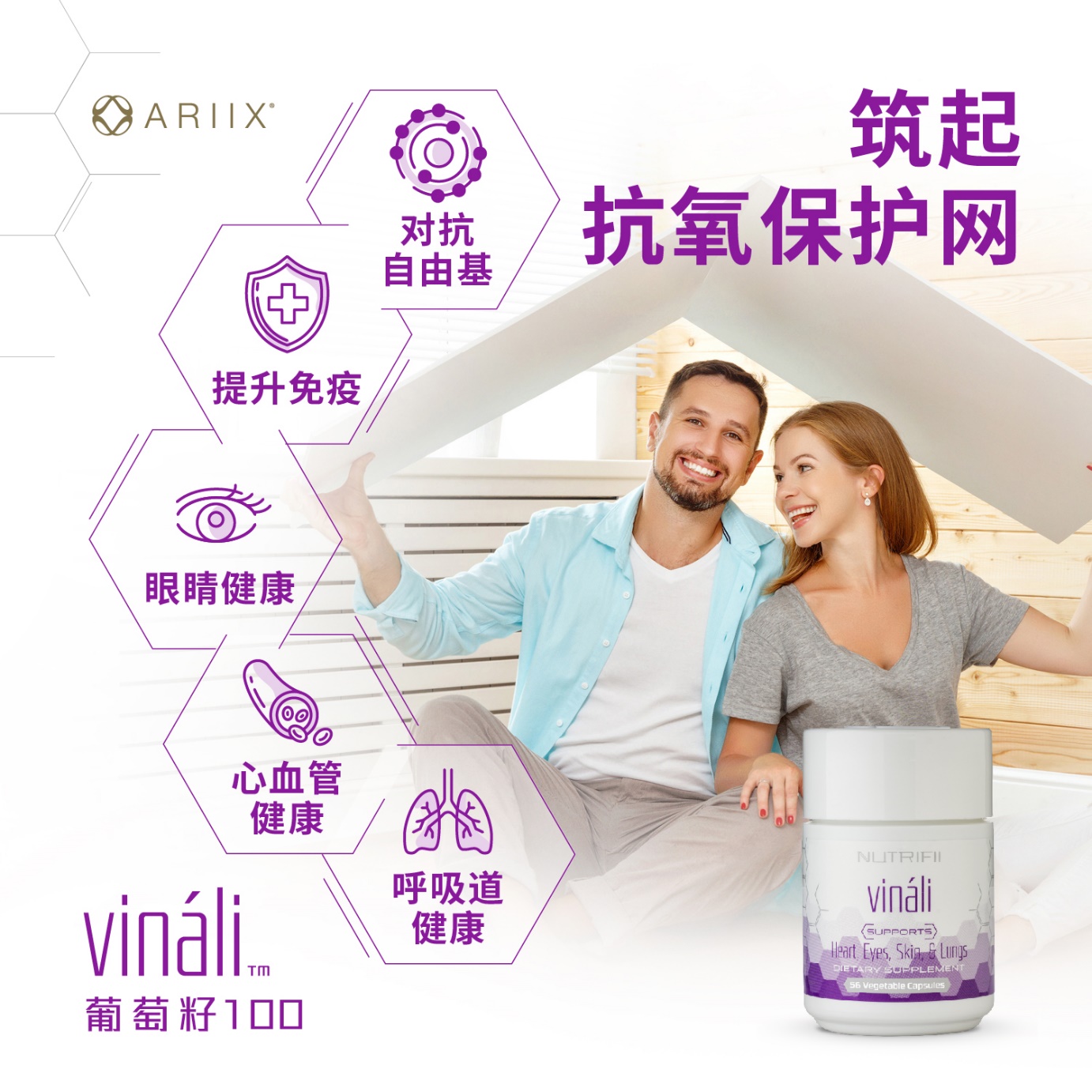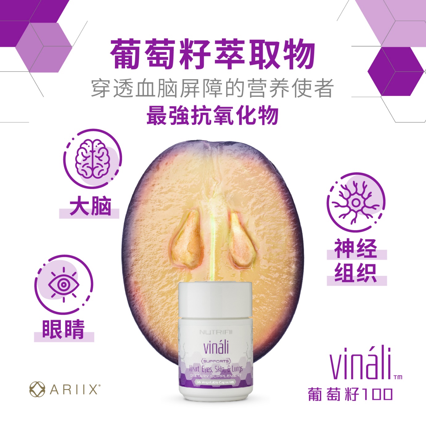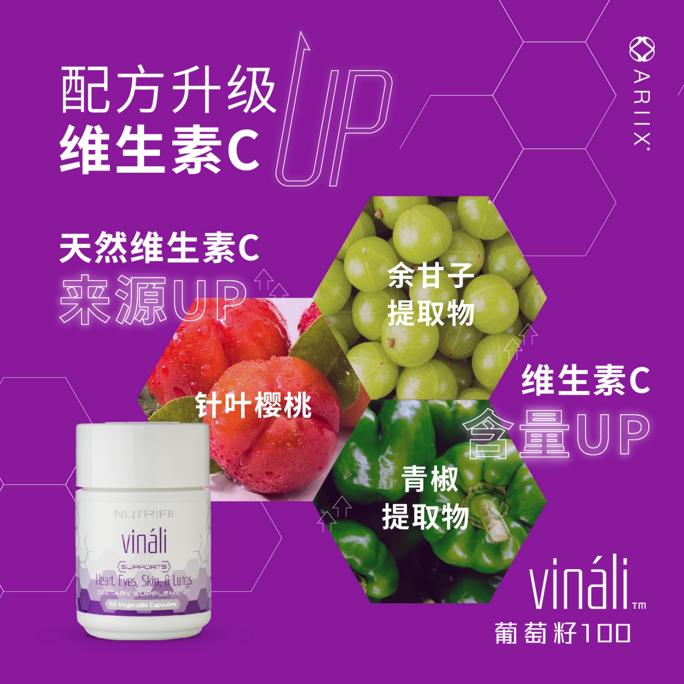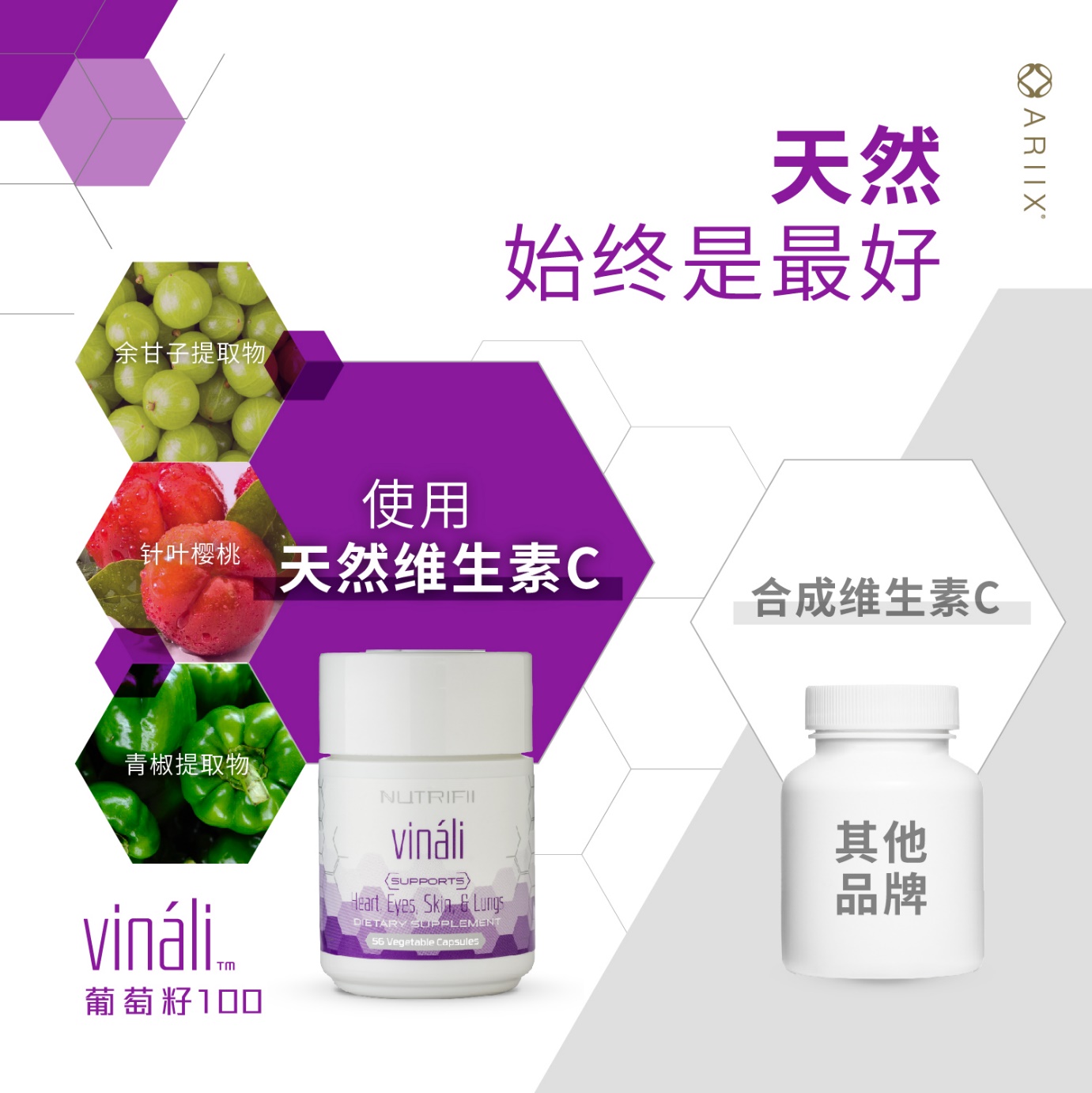 为何要选择爱睿希— 葡萄籽100升级版 葡萄籽100以3种高效成分(葡萄籽萃取物、天然维生素C、生物类黄酮)所产生的协同抗氧化作用,优化体内的免疫能力,为健康筑起一层稳固的保护网。 01 强效铁三角组合 葡萄籽100严选来自优质意大利米兰的葡萄籽作为原料,再搭配天然维生素C、生物类黄酮,为您的健康提供全面保护。具有强效抗氧化能力,还能维持细胞膜的完整性、增进肌肤的健康、保护身体免受自由基的侵害,是您的最佳营养补充品之选。 02 更高效的协同作用 将维生素C和葡萄籽萃取物完美结合,其协同作用令抗氧化能力提升至维生素C的20倍。更特别添加生物类黄酮,有助保护维生素C免于氧化过程中被破坏,从而大大提升维生素C的效能。 03 采用天然维生素C 采用天然维生素C,非合成维生素C,更有益健康。当中包括针叶樱桃、余甘子提取物、青椒提取物,可以提高抗氧化能力,并帮助维持更好的免疫系统、胆固醇水平以及心血管健康。 04 独特维生素C混合配方 维生素C是水溶性物质,不易储存于体内,需要不断补充。葡萄籽100采用独特的维生素C混合配方,蕴含高质素的非酸性维生素C,包括抗坏血酸钙、抗坏血酸锌及抗坏血酸镁,能确保身体摄取足够的维生素C。 05 选用素食胶囊 市面上的胶囊主要分为素食胶囊和动物胶囊。一般来说,由于素食胶囊的保质期较动物胶囊长,因此较不容易被老化或变质,可以作长时间保存。此外,素食胶囊内的纤维较不易被水分渗透,其稳定性也会比起动物胶囊高。葡萄籽100所选用的就是素食胶囊,是素食人士的信心之选。 06 近350种农药筛选 所采用的优质葡萄籽,会在检验过程中进行近350种农药筛选,远超于其它品牌只筛选34种的最低要求,洁净度高出10倍之多。更获犹太清真认证,确保成分洁净。 07 获得多项国际认证 康沛的产品质量于制造过程的各个阶段都受到严格监控,以合乎优良生产标准之严格要求,并对所有原材料进行广泛测试。更获得多项国际认证,包括:消费者实验室、InformedSport 产品认证、清真认证等多项权威第三方机构。