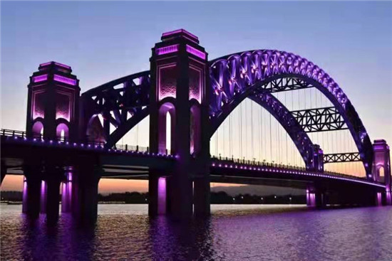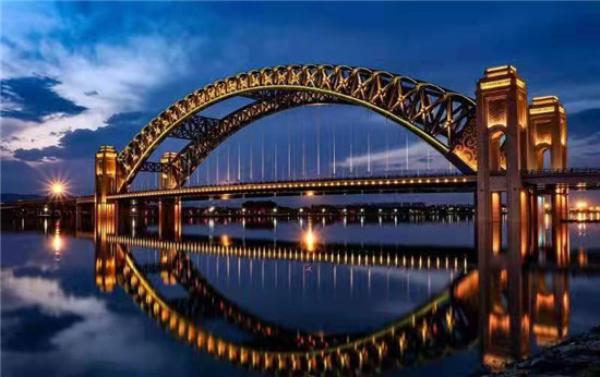 夜晚是大桥最美的时候,桥上灯光闪亮,两岸灯火辉映,五彩缤纷的色彩吧大桥装点得更耀眼,更夺目。