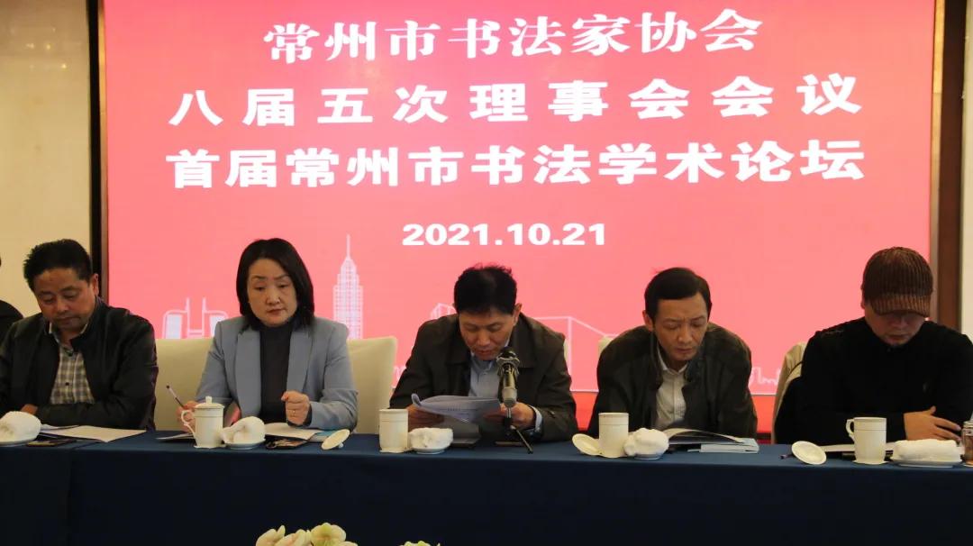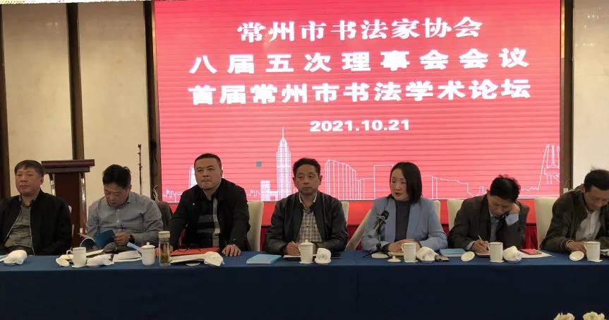 10月21日下午,市书协八届五次理事会会议、首届常州市书法学术论坛在常州听松楼花园酒店举行。市文联党组成员、副主席王蓉出席会议并讲话。会议由市书协主席陈清主持。