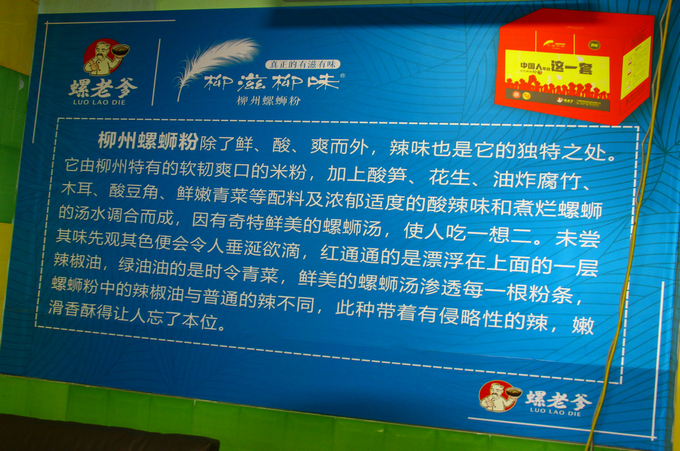 “柳滋柳味”螺蛳粉,曾荣获柳州袋装螺蛳粉大赛金奖。不仅是广西螺老爹食品科技股份有限公司旗下品牌,也是国内不可多得的独具特色的知名品牌,被国家相关部门列为“国家级非物质文化遗产”而位居全国螺狮粉十大品牌之首,是央视“美食中国”重点推荐的“舌尖上的美食”。 公司暨“螺老爹”掌门人黄金荣,是广西柳州市袋装螺蛳粉行业灵魂人物、知名企业家,柳州市螺蛳粉协会会长单位。由其创办的螺蛳粉展览馆不仅是中国美食文化中的佼佼者,“螺狮粉文化”还浓缩反映出了广西的民族文化、风土人情及锦绣山川,被誉为广西“风情文化美食博物馆”。