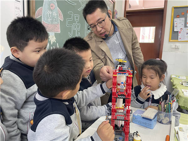 “你们的长大后都想做些什么呀?”在宣讲开始前,李煦博爸爸向孩子们提出了问题。“我想当航天员。”许多孩子说。“那当航天员要具备哪些条件呢?”“要有知识、能力。”“还要有担当精神。”“还要有爱国精神。”孩子们纷纷说道。李煦博爸爸以生动的语言、形象的视频向孩子们展示了航天员们艰苦的训练过程以及敢为人先、于家为国的拳拳之心。 此外,李煦博爸爸还带来了神州十三号火箭模型,以真实的视角,通过观察的方式,帮助孩子们理解“逃逸塔”“轨道舱”“返回舱”等生僻词汇。
