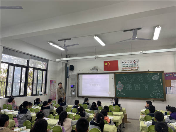 学生家长李群绩以“逐梦苍穹 强国有我”为主题,为孩子们上了一堂生动的爱国主义教育课。活动中,家长通过现场答疑、观看科普视频等形式,让孩子们了解到相关航天科技知识,也让孩子们体会到英雄的爱国精神,还让孩子们感受到身为一个中国人是多么光荣,更让孩子们从小树立起“请党放心,强国有我,学习英雄,逐梦苍穹”的坚定信念。