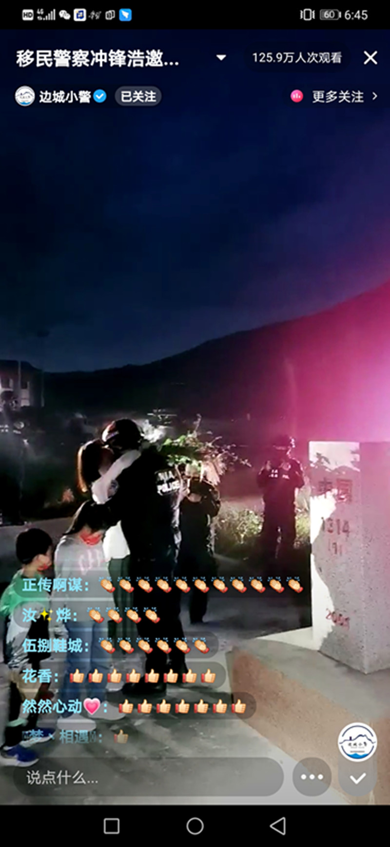 10月22日,收到上级调令的广西峒中边境派出所民警“老何”向所领导提出要求,希望参加在广西工作的最后一次边境巡逻,为自己的戍边生涯画上圆满句号。 老何18岁入伍,从边防武警到移民警察,由军转警,变的是身份,不变的是忠诚于党、戍边卫国的初心使命,20年戍边生涯,意味着与家人长期的两地分居,每年仅有不到1个月的团聚时间。如今,在国家移民管理局暖警惠警政策的支持下,终于能带着戍边人的荣耀回到家乡湖北,在湖北出入境边防检查总站继续书写对党和人民的赤胆忠心。 ![]() 巡逻当日,所领导专门邀请了上级工作组对整个巡逻活动全程直播。老何穿戴好警用装备,背上钢枪,再次抚摸这些无言的“战友”。一路上,老何与战友们忆往昔峥嵘岁月,一遍遍再触摸国防护栏,一遍遍再看边境的一草一木,回忆起随着综合国力增强,边境拦阻设施、警用装备的更新换代,回忆起20年戍边生涯的喜怒哀乐,畅谈着强军梦、强警梦,眼里充满了不舍与期待。 ![]() 战友们还专门为老何准备了“惊喜”,在巡逻的前一天,战友们悄悄将老何的妻子和儿女接到驻地,当老何巡逻至1314号界碑时,战友们把老何的妻子带到现场,让这名铁骨铮铮的移民警察瞬间破防。两人深情拥抱,述说着婚后的分居生活,述说着老何的戍边岁月,述说着妻子撑起照顾家庭重任的坚强和艰辛,老何一手抱着妻子,一手抚摸界碑,移民警察的家国情怀、铁骨柔情,将整个直播推向高潮。 ![]() ![]() ![]() 最后,老何向党和界碑告白:“丈夫许国,实为幸事,今归吾乡,永记党恩”。(记者:李晶) |