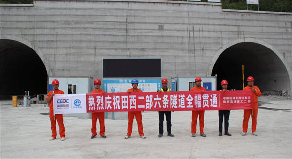 2021年10月19日,由中国能建葛洲坝集团承建的定安隧道左洞顺利贯通,至此,历经22个月的紧张施工,田西高速施工二部标段内六条隧道全部实现双幅贯通,工程进度取得突破性进展。