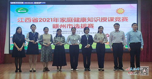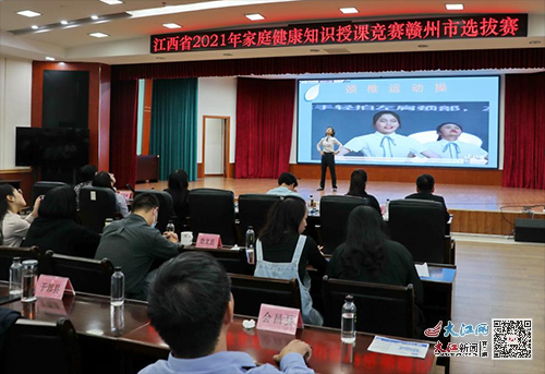 比赛现场 10月15日,江西省2021年家庭健康知识授课竞赛赣州市选拔赛在赣州市卫健委举行,经过一天的激烈竞赛和专家的综合评审,从来自各地、各单位的27组优秀选手中选出了个人一等奖2名、个人二等奖3名、个人三等奖共6名,优秀组织奖8名。赣县区人民医院护士杨晓芙代表赣县区卫健委参赛选手荣获三等奖。