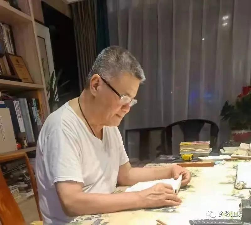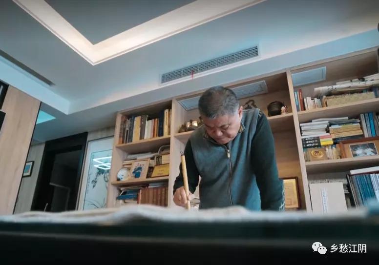 ▲夏国贤在书房“容居”书法创作 1996年夏国贤担任江阴市文联副主席兼秘书长,后任市文联主席,数十年间,有两件趣事。那年(2008年),有位大领导来江阴视察,在一家上市公司看到夏国贤书写的厂赋,边欣赏边说,“这文章书法都不错!”当时陪同的市领导一听十分开心,待客人一行回宾馆休息,立即让人打电话联系夏国贤,希望能够按照原样抄一份作礼品,这对宣传江阴和企业有好处。 夏国贤接听电话时,已是晚上8点多钟,因膝盖疼痛,正在诊所针灸。而书法作品的创作,特别是对要求较高的作品的书写,作者的精神状态和身体状况也相应要好,基于这种考虑,他回电话说:“我现在正在针灸,起针时间还没到。只能等停当后再过去。如等不及,你们就先将原件送客人吧”。像电脑程序一码归一码,他硬是不听召唤。
