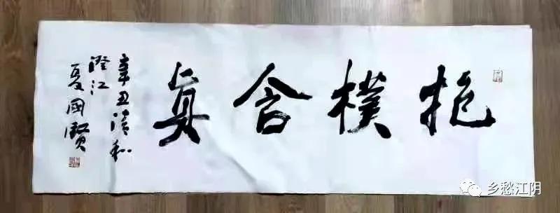 ▲夏国贤的手写了多少字? 从小帅哥、帅哥,到现在的老帅哥;从书法爱好者到书法家再到著名书法家,如果不是几十年如一日一门心思的读书、临帖,钻研、修炼,是不会成功的。手指上的老茧,胳膊的酸痛,不吃苦中苦,没人会成功。梅花香自苦寒来,他对书法的热爱和追求是发自内心,百折不挠的。 2012年2月,夏国贤携作品越过海峡去台湾办个展,江阴诗人庞培写诗祝贺:“他写故乡二字,既不采汉隶,不以行草入体,而以江流滔滔……(从北门浮桥头,到鲥鱼港,到华士动力机厂一一)整幅八尺的秋风,曾书:那时年少”。