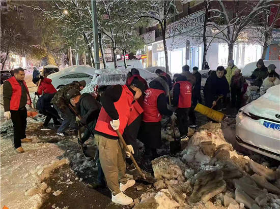 11月7日至今,沈阳市出现极端暴雪天气,严重影响了居民的正常生活。11月9日晚,铁西区霁虹街道积极响应区委区政府的号召,重点围绕背街小巷、4级路段、和中小学周边等交通要害部位,街道党工委书记梁君亲自带队,班子成员全员上阵,发动机关干部、社区工作者、志愿服务人员共计500余人参与到这场除雪除冰“大作战”中来。大家加班加点、连续作战,展现出了顽强的战斗意志和团结的工作作风。这种“超常规”的工作模式,不惧严寒的高涨热情,成为了这场暴雪里最温暖的“志愿红”,过路的居民纷纷点赞竖起大拇指。