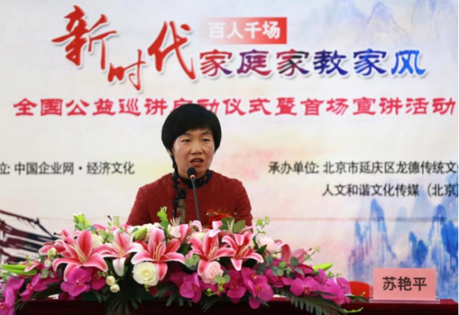 “本根教育”创始人、“全国巾帼文明岗”专家型校长郭秀艳作主题宣讲“本根教育”创始人、“全国巾帼文明岗”专家型校长郭秀艳以“新时代家风家教与父母担当”为题,结合当下家风家教的缺失和家教家风的当代价值,从个人、家庭、社会三个维度,结合古代家风家训,阐述了古代家风家训的丰富内涵,分享了当代父母在传承构建家风家教中应有的责任和担当。 河北地质大学教授、国学汇全国讲师团团长叶陈毅、大有书院院长马海军、中国教育发展战略学会传统文化教育专业委员会理事苏艳平以及中囯企业报·中囯企业网经济文化频道主编康金胜等七位专家、教育工作者分别作了“孝悌忠信 五福临门”,“家训里的成才密码”“童蒙养正,天下太平之源”“家庭教育,固国之本”主题宣讲。