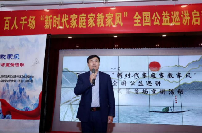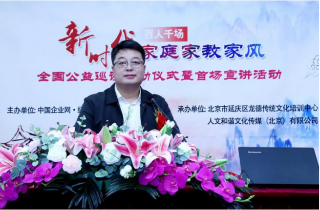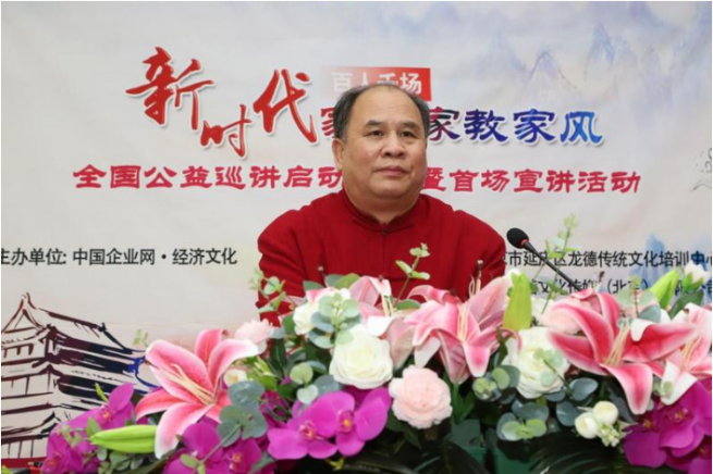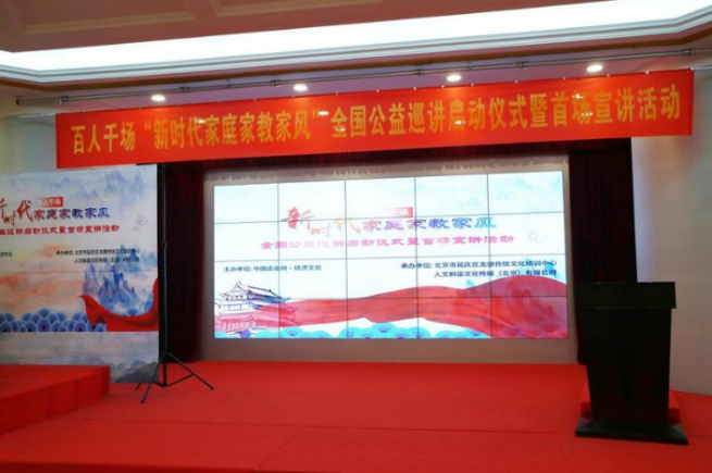 “新时代家庭家教家风”全国公益巡讲活动启动仪式现场本次活动由由中国企业报·中国企业网经济文化频道主办、由北京龙德传统文化培训中心、人文和谐文化传媒(北京)有限公司承办。活动以线上与线下同步举行。来自全国各地优秀传统文化专家、学者、教师和企事业单位代表、社会团体、广大家庭成员以及志愿者现场参加活动,有3万多人线上收看宣讲。 “新时代家庭家教家风”全国公益巡讲宣讲团成员由全国道德模范、全国文明家庭、中国孝子以及著名教育专家、学者、优秀企业家、传统文化教育工作者组成。首场宣讲活动后,宣讲团还将赴河北、山东、辽宁、云南、海南等省、市开展“新时代家庭家教家风”巡讲活动。