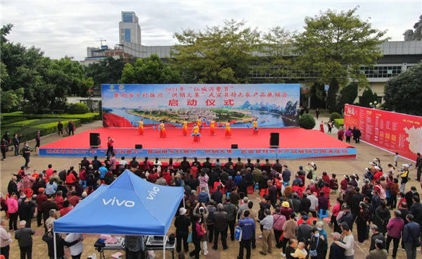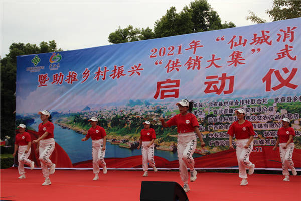 2021年“仙城消费节”暨巩固脱贫成果、助力乡村振兴“供销大集”武宣县特色产品展销会启动仪式现场
