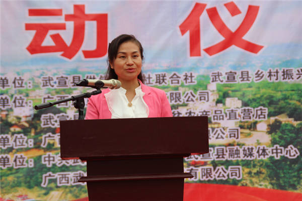 武宣县副县长梁璐启动仪式上致辞 武宣县副县长梁璐参加启动仪式中致辞道:此次活动主要是为武宣县及县外特色农产品开拓市场搭建的大平台,是农业生产企业展示加工水平的大擂台和集合农产品加工信息的大舞台,对改善消费环境新路径,强化维护民族团结,提振消费信心,释放消费潜力,加快武宣县域经济发展,具有重要意义。武宣县将以这次展销会为契机,加快农业产业化的发展,促进少数民族地区农业增效、农民增收、农村稳定,更好地巩固脱贫攻坚成果,助推乡村振兴。