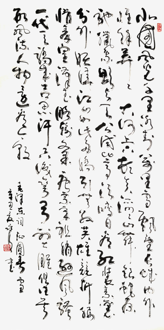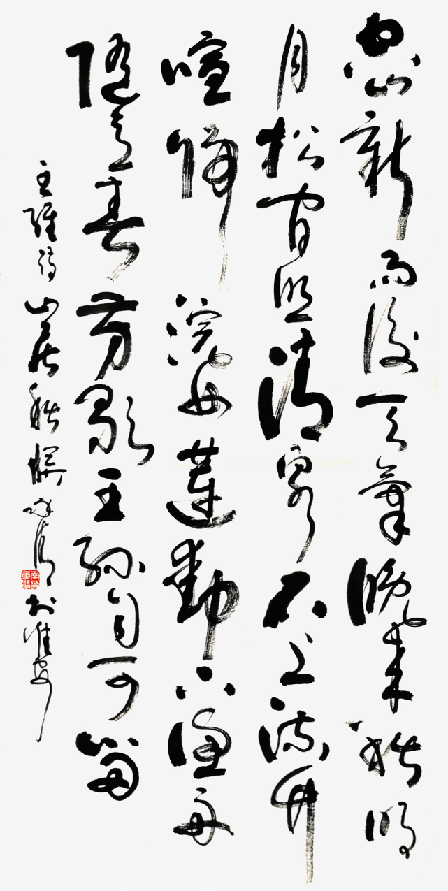 意趣高妙阔达,字如其人。从运笔、用墨、布局、章法来看,其作品的布局严谨而不呆板,灵动而不杂乱,犹如水落石出,涤净浮尘,秀色自现,风骨独标,承传统于字里行间,新意法度之外。真正做到当代书法的审美艺术性、观赏性的统一,已具有书家之气度也。