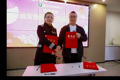 新脑力执行总裁王全晟与战友集团(长三角)发展中心主任吴秒仪现场签约。(朱铭) |