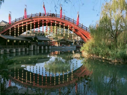 径直向前走,导游夏婷婷把我们领到了一处集市,后来才得知我们来到的是“西市”,而另一边还有“东市”,据说“买东西”一词就是这么来的。在集市闲逛,有实景演绎市井喝酒聊天的、有舞狮等。只见石头铺成的路,还有各种小摊位,小桥、流水、人家,都在这块美地寻到了。琳琅满目的商品,川流不息的人群,莫不是真的回到了盛世唐朝?要不是周围都是游人,我们还以为自己穿越了。据了解,这里还是影视拍摄基地,《妖猫传》便是在此取景的。问老师(武汉)教育科技有限公司法人代表杜冬星说,唐城带给了我们不一样的体验,使我丰富了历史知识,更重要的是,它在我们的内心深处留下了深刻而美好的回忆。