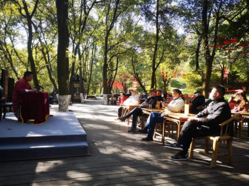 我们参观了隆中书院、诸葛草庐、吟啸山庄、铜鼓台、长廊、观星台、棋盘石、琴台、孔雀寨、猴山等众多景点,这里群山环抱、松柏参天,景色优美。小憩,听三国故事,观看实景演出《三顾茅庐》,刘备三请诸葛亮,怀抱着坦诚之心,最后终于如愿以偿,诸葛亮被刘备打动,而我们也被这情景所吸引。“我们做企业的,对人才也要像刘备一样三顾茅庐,重视人才,企业才走得更远”湖北百草济世中医科技有限公司董事长易三明如实说。