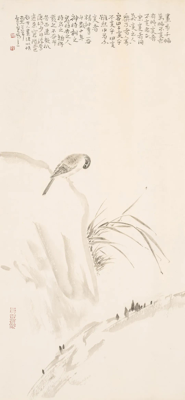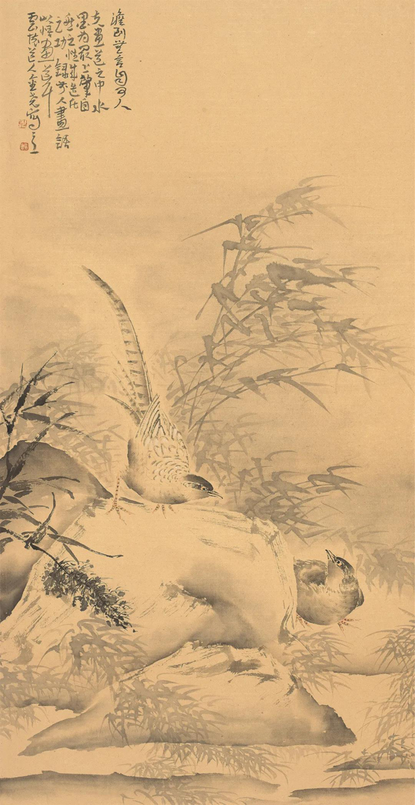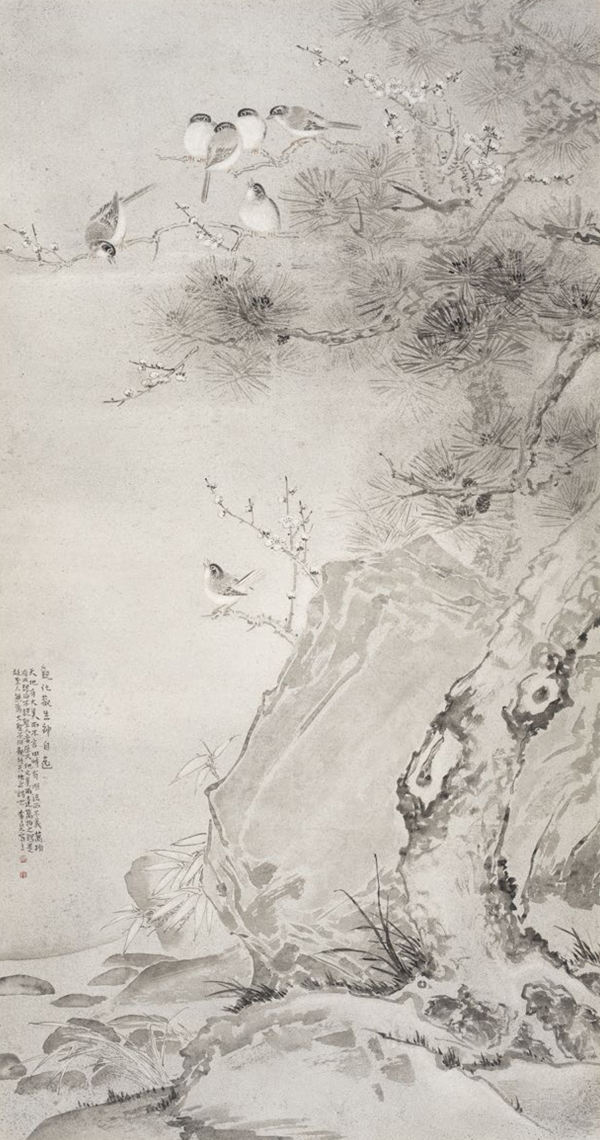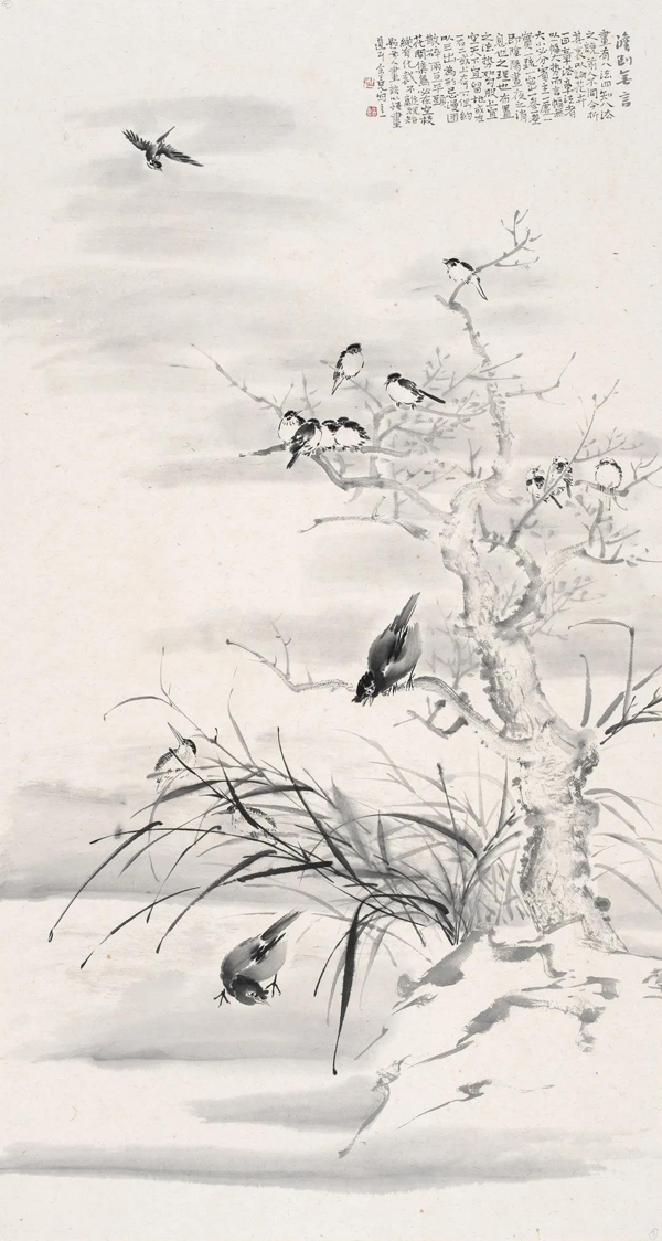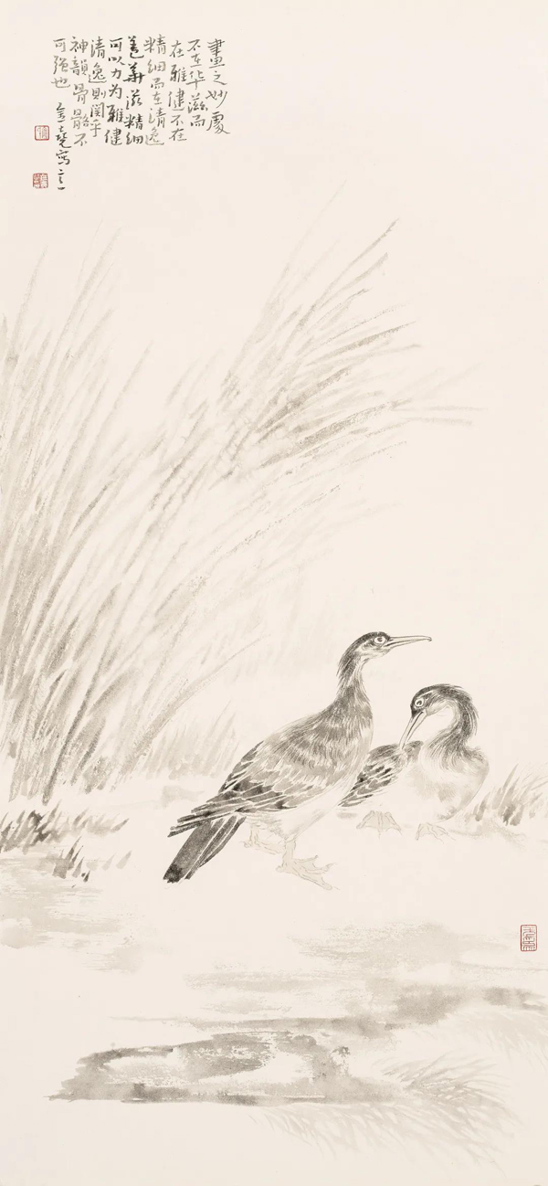 《四时花鸟皆学问》136cm×43cm×4