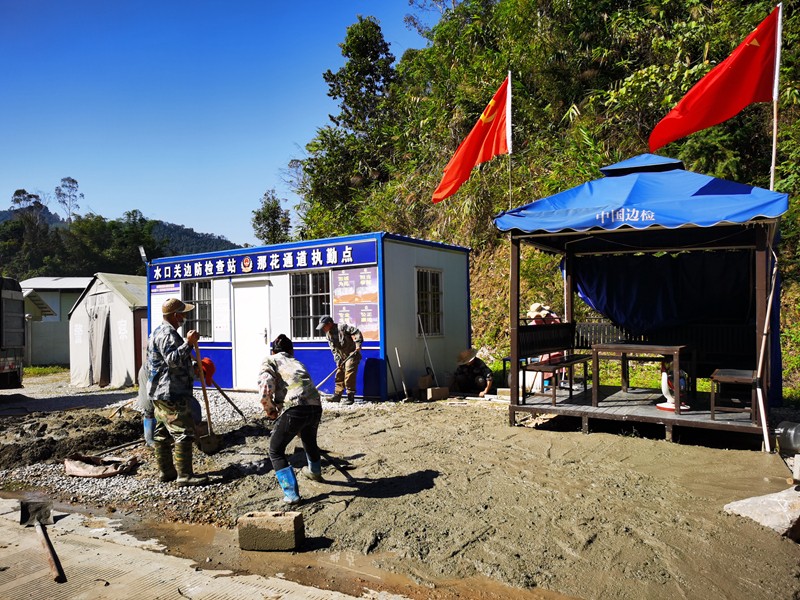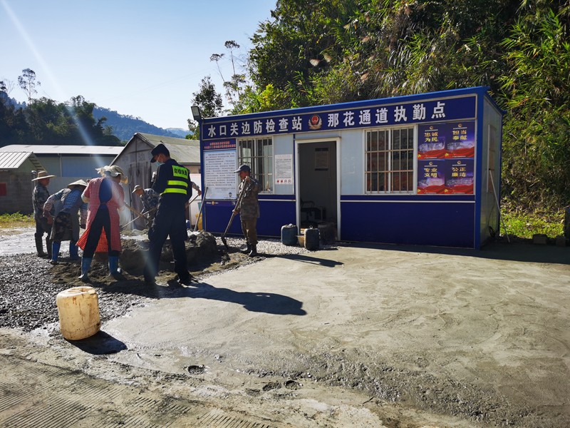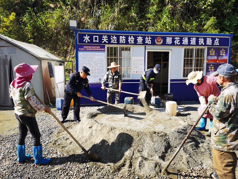 众人拾柴火焰高!12月2日,水口关出入境边防检查站执勤二队对那花执勤点地面进行水泥硬化,附近边民纷纷前来帮忙,这一幕生动的警民携手共劳动画面充分体现了警民之间的鱼水之情。 ![]() 为改善执勤队驻勤环境,确保执勤现场干净整洁,该站执勤二队队长及时联系工人对执勤点地面进行硬化,进一步美化执勤现场环境。由于人手不足,土地硬化工作进展缓慢,过往边民发现这一情况,纷纷停下脚步,询问民警是否需要帮助,并主动撸起袖子加入到队伍里,摊平碎石料、运水倒水、搅拌泥沙,众人干活期间有说有笑,不到2个小时时间就完成了执勤点地面硬化。边民抹了抹汗水和民警说道:“平时看到你们不分寒暑、不舍昼夜地在这里工作,很感动,所以今天做一些力所能及的事情希望能帮到你们”。看着他们一张张淳朴面庞上的笑容,民警们深受感动纷表示一定会更加努力守好国门安全,为群众办好事、办实事。