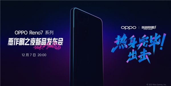 12月6日,OPPO官方微博正式宣布将于12月7日20:00举办主题为“恶作剧之夜”的OPPOReno7Pro英雄联盟手游限定版发布会,届时将发布OPPO Reno7 Pro英雄联盟手游限定版手机新品,发布会现场还将邀请英雄联盟明星选手 UZI 和微笑展开一场巅峰对决,并由知名六边形解说管泽元倾情解说。