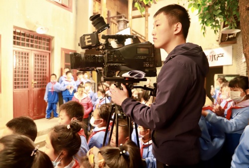 “灯光到位,请演员做好准备”“现场保持安静,3、2、1,开始!”眼前的这一幕是在《逗吧逗把街》的拍摄现场。不过,相比平日里封闭式地拍摄,今天的拍摄现场则来了许多的小观众。在征得节目组的同意后,12月7日下午,天华寄宿制学校近百名师生来到华谊电影小镇,继续开展学校特色校本课程“行走的课堂”社会实践活动。今天,他们将在节目组导演“黄药师”的带领下观看影视作品的现场拍摄和了解后期的剪辑和制作。原本只有在电视里才能看到的镜头出现在了自己的眼前,同学们兴奋极了。待拍摄完后,大家围着演员询问着各种有关节目拍摄问题,“黄药师”等演员则耐心地为同学们做讲解或演示,现场真是好不热闹!