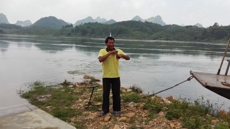 默默无闻 守护红水河游客安全 韦仕珠的家就在临近红水河的马山县乔利乡三乐村百掌屯。红水河中间有一座小岛,上面堆积有厚厚的河沙,因此人们都称该岛为百掌沙滩。百掌沙滩四周被河水包围,形成一座孤岛。由于孤岛地形独特,风景优美,平时都有不少游客到岛上游玩。自从河的下游修建了电站,老韦家附近也修了个码头。从此,老韦就用船只运送乡亲来往于红水河两岸,节假日及周末他则开船接送一些游客到沙滩上游玩。