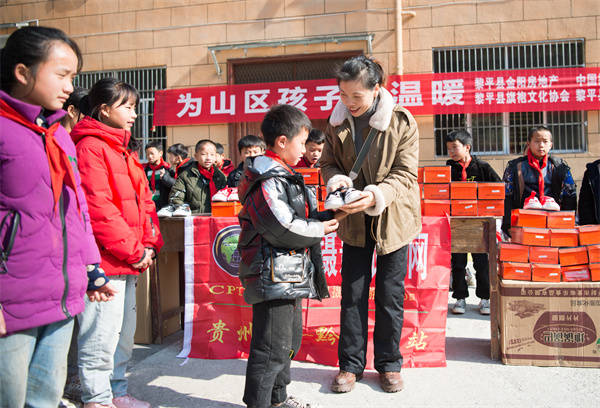 活动中,中国摄影旅游网贵州省黔东南站主席、黎平县旗袍协会会长唐静女士感情深重的介绍说:“我们经常到高求村采风,这里民族风情浓郁,老百姓非常淳朴,热情好客,每次来我们都很受感动,所以我们一直想为他们做些什么,刚好冬天来了,那就给学校孩子们买一双鞋,作为他们的新年礼物吧,让孩子们在这个冬天感受来自社会大家庭的关怀和温暖”。唐静女士是这次活动的主要发起人之一,据了解,为做好这次活动,她努力做了很多工作,得到了社会各界的大力支持。黎平县金阳房地产开发有限公司董事长丁云国先生、中国摄影网贵州省黔东南站、黎平县旗袍文化协会、黎平县户外拓展运动协会等社会团体组织会员都积极为活动捐款。