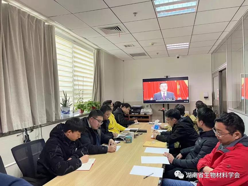 2021年12月26日,湖南省生物材料学会党支部召开集体学习会议,传达学习中国共产党湖南省第十二次代表大会精神。