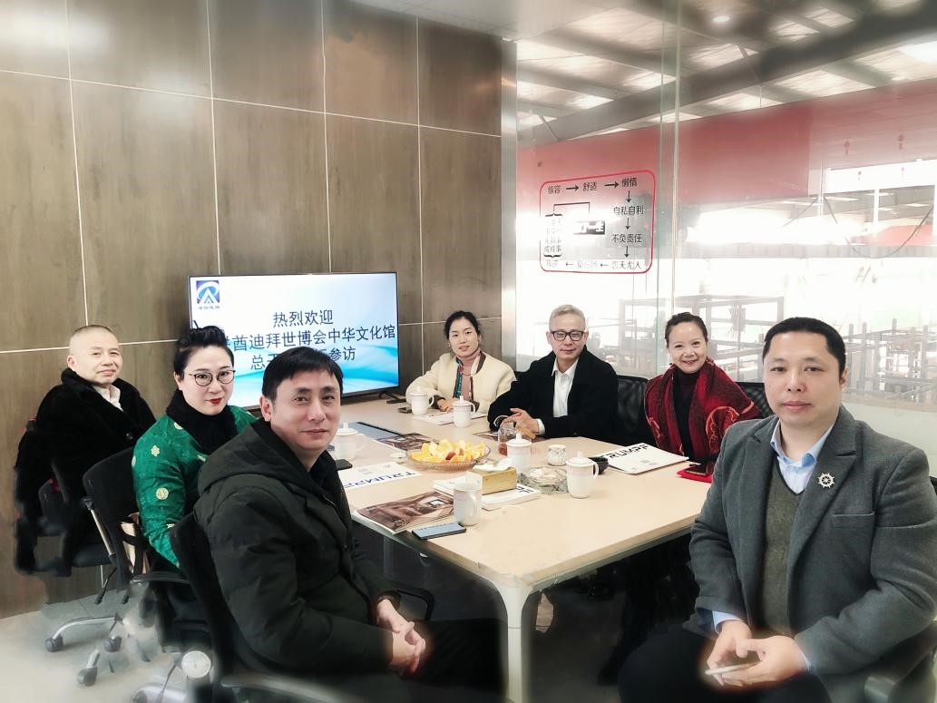 12月29日上午,2020迪拜世博会中华文化馆总干事顾纯郡、著名资深媒体人陈凤玲、桐乡磐十文化艺术创意有限公司董事长戴金海等一行人来到苏州通快电梯进行了年末走访交流。