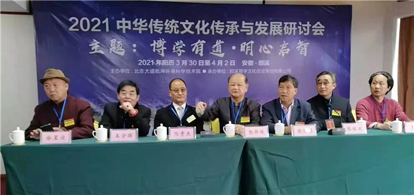 2021年4月,参加在安徽朗溪的”2021中华传统文化传承与发展研讨会”。本人作为应邀聘任的本次大会名誉主席(主席台上就座),在大会上作了报告,并获得“名誉主席”证书以及“突出贡献奖”荣誉证书。