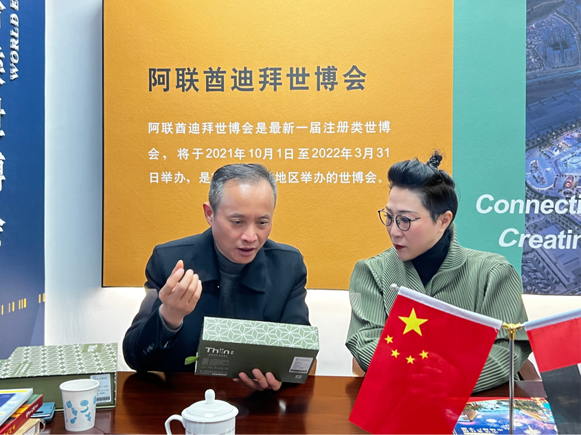 作为2020年迪拜世博会中华文化馆的展出产品之一,浙江新隐服饰的远红外光波能量纤维材料受到了不少的关注,1月5日下午,董事长张炳洪来到中华文化馆位于上海的办事处走访交流,洽谈进一步的合作事宜。
