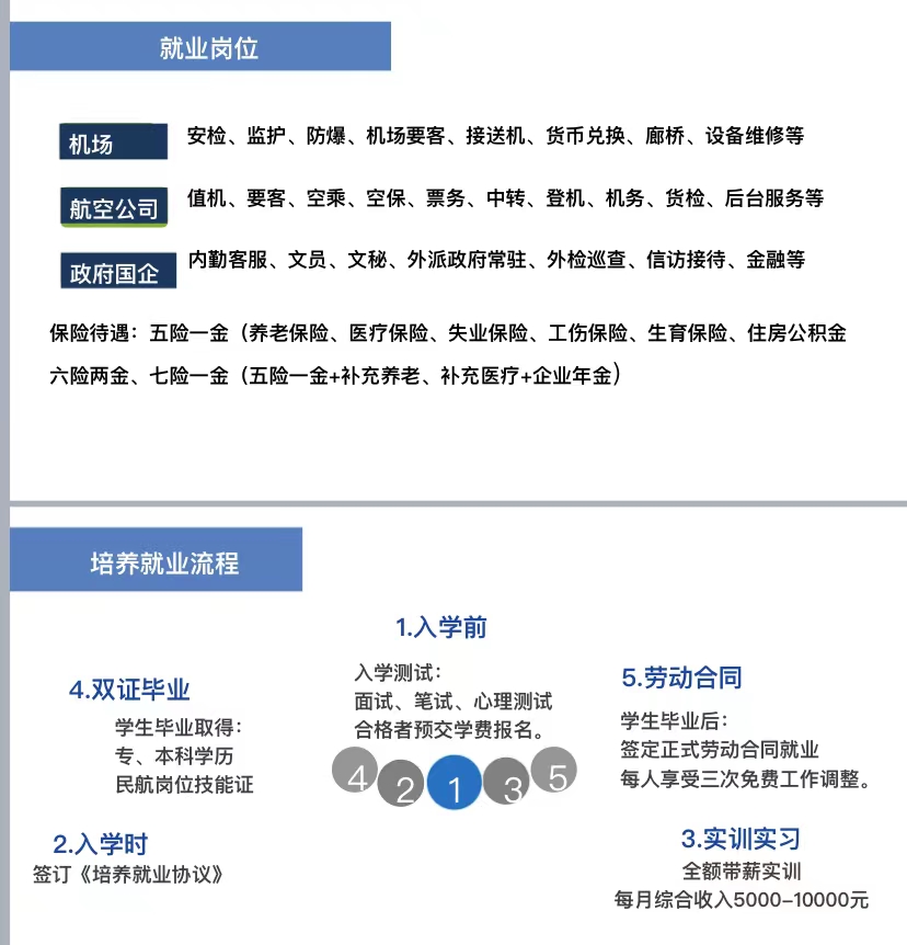 孩子在校至少学习并逐渐掌握三种以上的实际技能,上岗后可以有三次免费调岗机会。 对于贫困家庭的孩子可以帮助办助学贷款。 入学就签就业保障协议,全部是定向培养计划。 机场 航空公司 央企 国企 上市企业等直签合同! 北京天河空港航空职业学校,到目前为止就业率99.99%,过去十年就业零投诉。 全国招生总负责:18513598868王老师