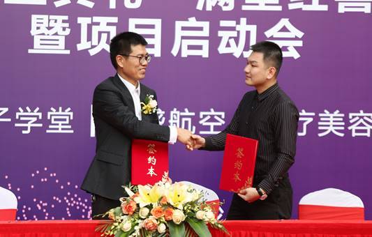 乐人生与北医制药集团董事长谢瑞 签订战略合作协议 紧接着,乐人生航空项目负责人陈建福、女子学堂项目负责人杜晓晓就项目发展前景和商业模式规划分别进行了介绍阐述讲话。