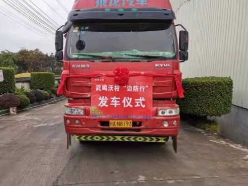 ——南宁市武鸣区双桥镇举行沃柑拥军“边防行”发车活动 一箱箱甜美多汁的沃柑送至凭祥市退役军人事务局,由该局转到南部战区陆军边防旅的战士手中,沃柑香甜,战士脸上绽放的笑容更甜,小小沃柑承载着壮乡人民对边防子弟兵的爱戴,展现了武鸣壮乡人民拥军优属的传统美德。1月9日,最早成熟的第一批沃柑从树上采摘下来,3000件共3万斤鲜甜沃柑从武鸣区双桥镇发车送往凭祥市,完成沃柑拥军“边防行”的顺利交接。 ![]() 沃柑从武鸣出发 去年以来,疫情肆虐,边境边防压力巨大。丰收不忘国防,为感谢边防子弟兵在疫情防控与保卫边疆安全的辛勤付出,以“沃柑红”增彩“中国红”为主线,武鸣区最大的沃柑产业基地双桥镇党委、政府积极发出倡议,号召广大爱心企业与个人捐赠沃柑,将最大最甜的沃柑献给最可爱的人。倡议一经发出,果农和爱心企业广西万鸣果业有限公司纷纷响应,挑选出自家最红最甜的沃柑,连夜加工包装送往凭祥市,为边防官兵送去武鸣人民的一份情。 ![]() 沃柑抵达凭祥市退役军人事务局