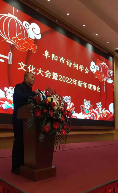 2022年元月15日上午,由阜阳市诗词学会主办、颍泉农商银行协办的“阜阳市诗词学会2022新年理事会”在颍泉区乐富强嘉悦酒店隆重举行。颍泉农商银行的代表、阜阳市诗词学会的部分理事和会员代表以及部分县(市)诗词学会的代表共二十余人出席了大会。