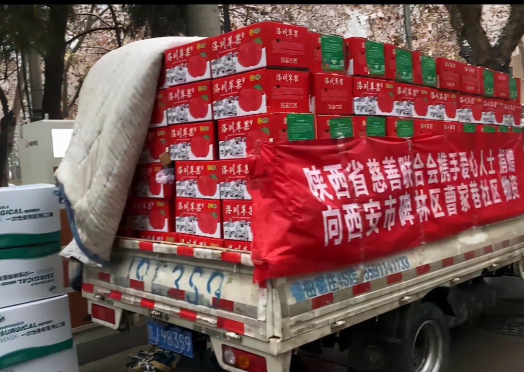 为庆祝西安个别地区解封,市民能早日恢复正常工作次日,省政协委员少华集团高海军董事长,爱心人士全国政协委员、省戏曲研究院院长李梅院长,爱心人士鸿雄实业(陕西)集团公司陈泉龙,冷西盘,施忠和,刘芳平,吉方国,陕西秦发祥建设工程有限公司郭瑜女士爱心企业:陕西少华建筑工程有限公司、延安鄜州农副产品贸易有限责任公司、陕西元欧建设工程有限公司总经理袁鑫、为西安市社区个别残疾人、贫困户、老年人、以及一线环卫工保洁人员、疫情一线工作人员捐赠爱心物资洛川红富士苹果一车4000多斤,一次性医用口罩50000个、N95口罩4000个。以及爱心企业延安鄜州农副产品贸易有限责任公司将红富士苹果连夜免费送到西安。只要人人都献出一点爱,我们的社会将更加温暖。