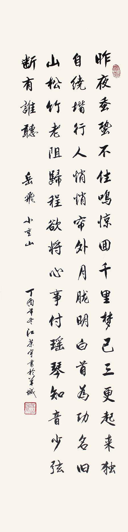 ![]() 江荣宇,1940年生,广州人,历任香港珠江建筑装饰集团董事长、广州珠江建筑装饰有限公司董事长、广州牧马人广告公司董事长、香港珠江书画院院长、“创意装饰”杂志社社长、广州珠江画院院长。近年来先后参加国内外各级展览,荣获金奖40多项,并被授予“当代书画名家”“中华杰出艺术家”“最有收藏价值艺术家”。 他的作品和传略被入编《中国书法全集》《一带一路 一书一画》《新中国当代书画史》《世界艺圣》《海峡科技与产业》等三百多种典籍之中。 中央电视台《收藏天下》《名家对话》等频道分别作了专题报道,中国音像出版总社,广东音像教育出版社出版了江荣宇作品专辑,多个报刊、网络媒体都有他的专题报道,他的知名度很大,是一位成功的企业家和书画艺术家。 ![]() ![]() ![]() ![]() ![]() ![]() |