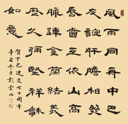 ![]() 彭云山,1967年出生于广州。1990年毕业于北京清华大学。经多年寻师访友,刻苦专研,对古人千古不易的笔法孜孜以求,努力追求在书法作品中有自己的气、韵、神。因此部分作品获得了一些全国范围的金奖银奖,得到部分行家的认同。现为中国民族建筑研究会书画艺术专业委员会副秘书长、国家民族画院特聘书法家、中国楹联学会书法艺术研究会特聘专家。2011年以来作品入选《中国艺术大家》《当代书画十大名家精品集》《中华翰墨》等一系列书籍。 书法本身有自己的魅力,其境界不是装腔作势,反复构思添补又或不知深浅,随意涂抹可达到的,它直接映射出人的心灵、胸襟。在书者有意无意之间笔、墨、纸和谐地交融,留下了让人心旷神怡的墨宝。若说文以载道,那么书法则可以说暗合道心,包括它书录的字句文章,在有意无意间震撼人的心灵,让人沉迷。传王羲之著《记白云先生书诀》就明确指出:“书之气,必达乎道,同混元之理。七宝齐贵,万古能名。阳气明则华壁立,阴气太则风神生。把笔抵锋,肇乎本性。”可见书法在肇乎本性中功莫大焉,可以说书法不悟本性难大成。 多读载道之文,多看古今人之书法名作,随缘与良师益友游,吸纳天地自然风光之神韵,感受风雨雷电之神威,体察自己玲珑剔透之本心,手不释书、笔,吾不知时日之过也。大浪淘沙,光阴似箭,时人评议褒贬与名利都如浮云!我相信水滴石穿,相信积善成德是一定会神明自得的!