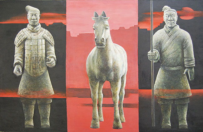 孙永印 《行军路上》 入选第六届全国美展 《破土》 入选第八届全国美展 《死生之地》入选第九届全军美展 《沉积》 (秦佣系列之二) 入选第十届全军美展 《沉积》 (秦佣系列之三) 荣获2001北京国际艺术博览会特等奖 《红墙》 入选全军“远太杯”美术作品展,荣获二等奖 《东方》 入选文化部、广播电影电视部第四届美术作品展 《月光》太平洋国际拍卖会收藏家收藏 《夕阳》太平洋国际拍卖会收藏家收藏 《冬韵》深圳动产拍卖会私人收藏 另著作《中国历代人物造像》由国家外文局《今日中国》出版社出版。 曾多次在中国《美术》、《军旅画家》、《人民日报》、《当代绘画交流》、《传奇天下特刊》等报刊上刊登作品。
