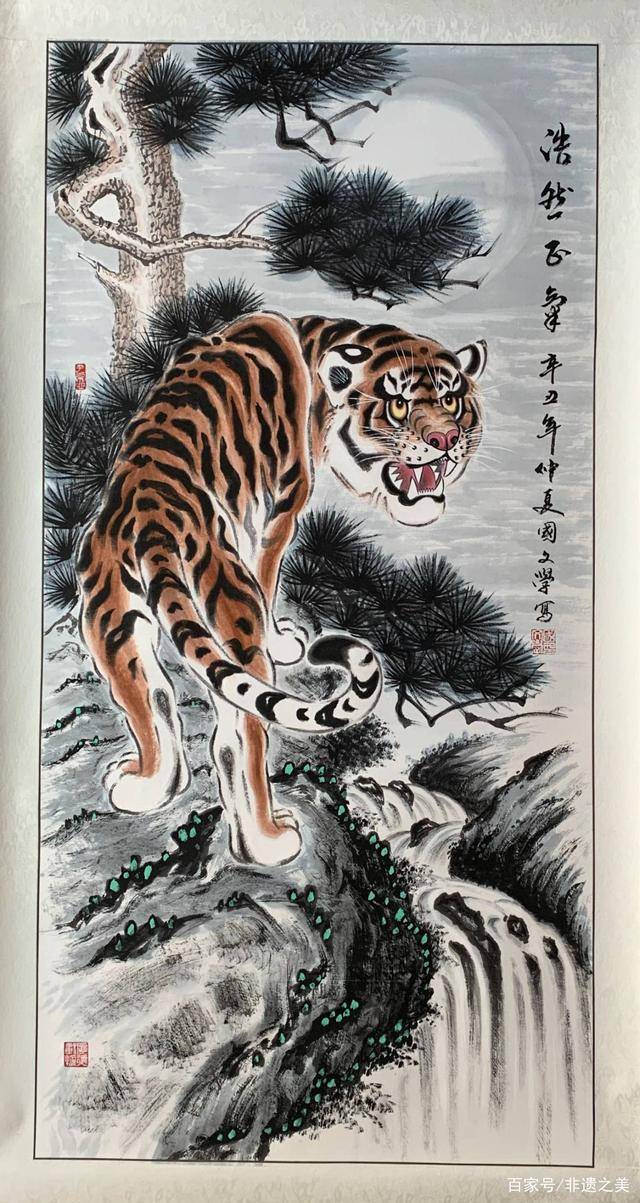 国文学出生于文化世家,自幼酷爱书画,擅长画人物、山水、画虎。师从中外著名画虎大师姚少华老师,入室关门弟子。山水画受到首都师范大学陈志良教授精心指点,风格凝炼、浓淡有度、章法严谨;继承传统、博彩众长、突出神威、表现正气。