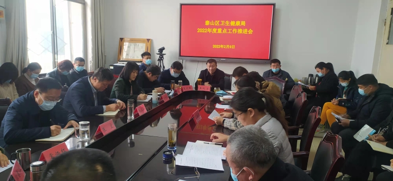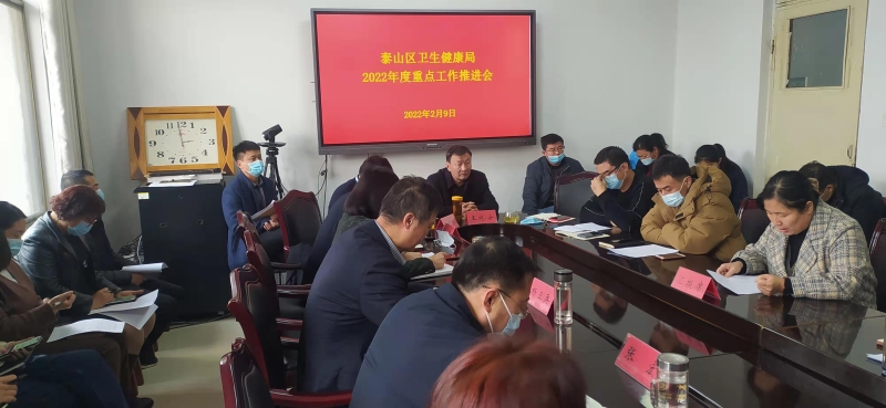 2月9日,泰山区卫生健康局召开2022年重点工作推进会。泰山区卫生健康局党组成员、副科级以上领导干部,局机关各科室、执法大队全体工作人员,各直属单位主要负责同志参加会议。会议传达了区第十四次党代会、区委经济工作会议、区“两会”精神,局机关各科室、执法大队、计生协会分别汇报了2022年重点工作目标任务。