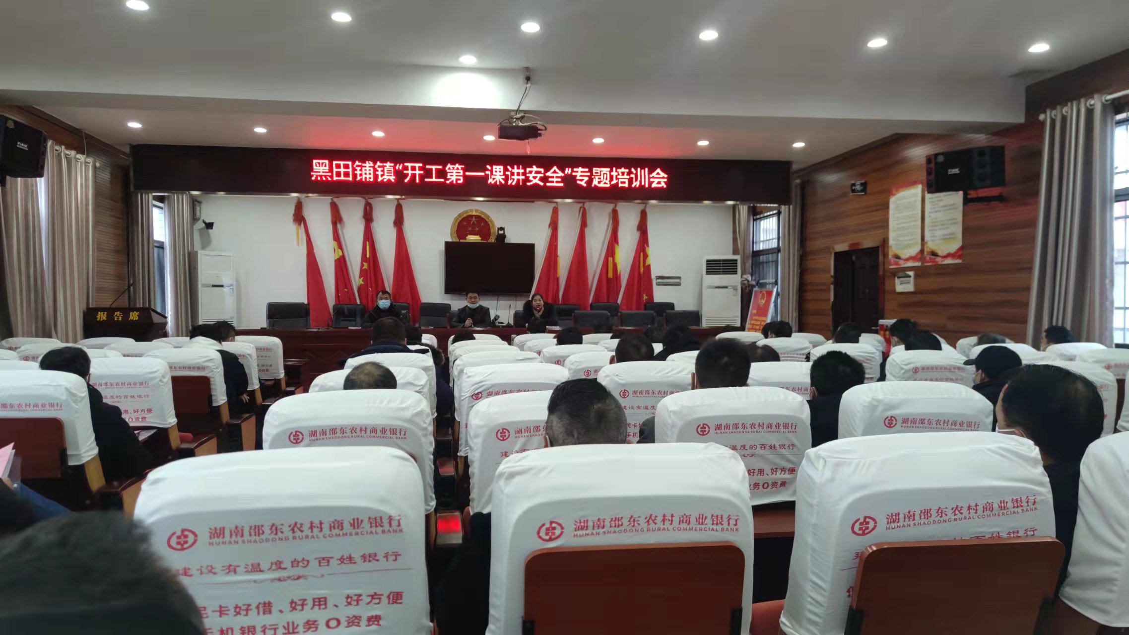 2月12日,邵东市黑田铺镇组织召开辖区企业、工厂“开工第一课讲安全”与疫情防控专题培训会。