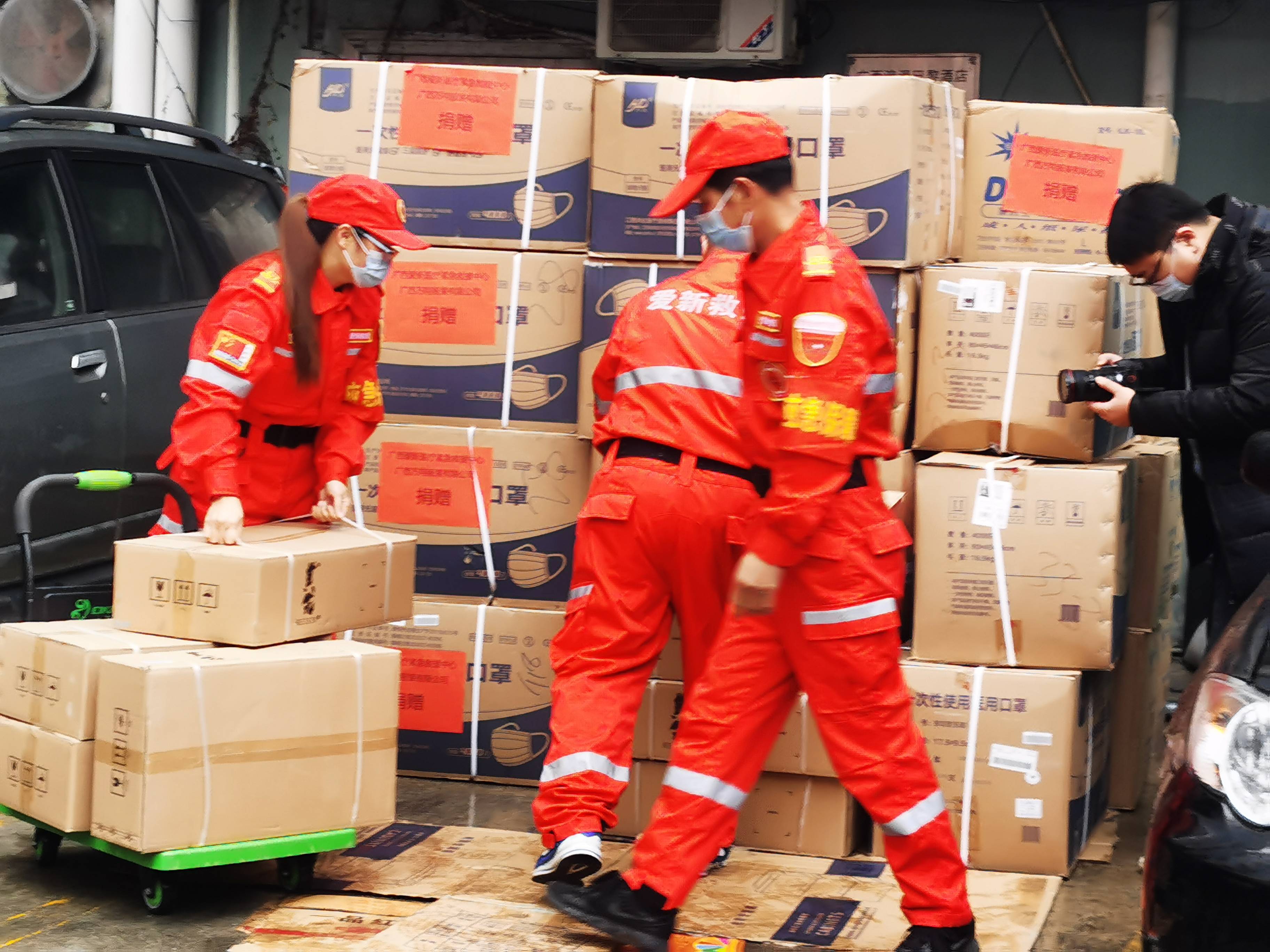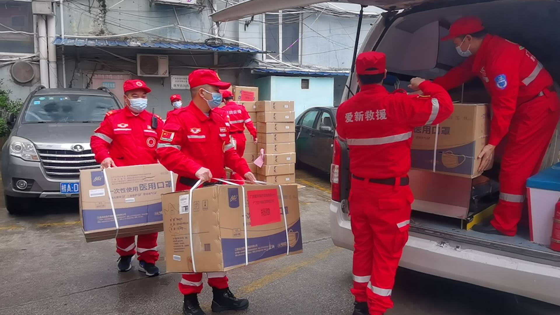 2月15日上午,广西爱新医疗紧急救援服务中心抗疫先锋队在救援服务中心办公大楼前集结,将一件件防疫物资,一箱箱生活用品搬上救护车及货车,启程奔赴百色市德保县等地,支援德保县抗击疫情。