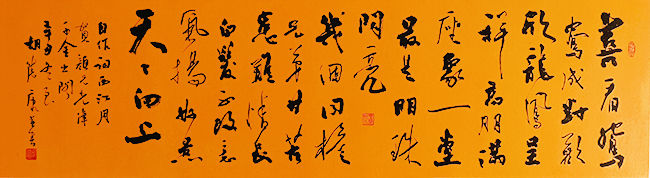 ![]() ![]() ![]() ![]() ![]() ![]() ![]() ![]() ![]() 释文:喜看鸳鸯成对,欢欣龙凤呈祥。高朋满座聚一堂,最是明珠闪亮。几个同檐兄弟,甘苦患难情长。白发不改意气扬,好景天天向上! ![]() 释文:浓荫夏长,烟雨微茫。薰风里,节序端阳。小荷初放,梅子正黄,更离骚咏,龙舟渡,粽子香。凭栏回首,岁月空忙。叹白发,屡误春光。休说题柱,且自思量,愿书常读,心常静,体常康。 |