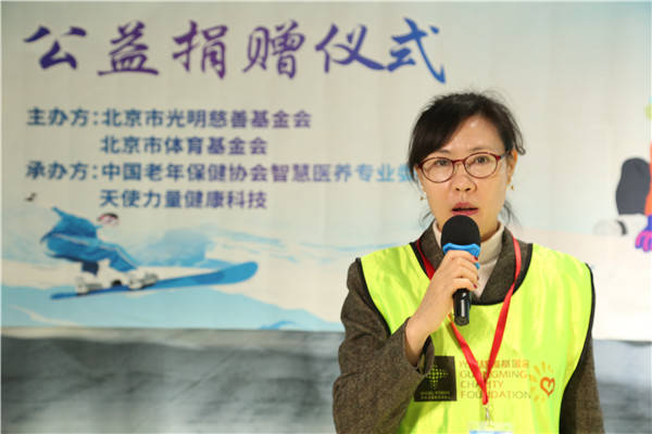 大手拉小手 爱心伴你行 会议期间,北京市光明慈善基金会理事长李林、萨马兰奇基金会中国代表,中国体育总局原训练局局长高希生代表、中国老年保健协会智慧医养专业委员会秘书长段普西、北京奥运会申奥大使、中华全国体育基金会运动员委员会副主任委员、光明慈善基金会爱心大使桑兰、天使力量科技公司董事长胡志远博士、光明基金会副会长徐同民和薛葵阳、及赵贵臣都发表了重要的讲话,领导们高度肯定了体育力量、公益行动、健康科技对北京冬奥会的意义。当代中国文化学者、辞书编著家、诗词赋书画艺术家、系列文化艺术文集作家刘少英作为书画界的领军人物现场挥毫泼墨,刘少英为光明慈善基金会爱心大使桑兰题词:凌云豪气。同时,刘少英还为北京市光明慈善基金会题词:借其光明 惠君重生,顿时场上的气氛更加热烈了。志愿者是一群最可爱的人,天使力量对光明慈善基金会捐跑志愿者的行动,更是北京冬奥更温暖的一束光。