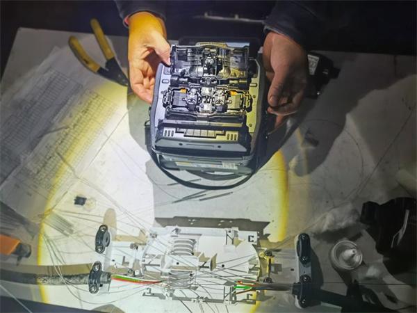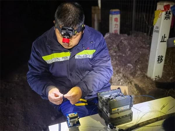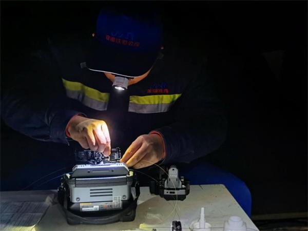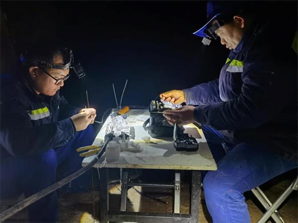 2月24日00:30的新碧,0℃,漆黑寂静的铁路旁,相隔百余米,有两个亮点,两组铁路通信工带着头灯正在进行光缆熔接。