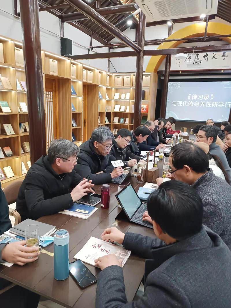 第二阶段:由市东海城市文化研究院华建新院长,就王阳明《传习录》与现代修身养性之间的关系问题与参会者做了分享。同时,对《传习录》这部书的基本结构、思想内容作了介绍。并联系《传习录》上卷中“心即理”部分的代表性语录作了详细地解读。有四位研学者代表对《传习录》学习中所碰到的一些学术问题现场提问,华院长当即作了回应。华院长在分享中强调:《传习录》由阳明先生讲学语录和论学书信组成,是中国古代思想史上的经典著作,包含了阳明心学的基本思想内容,是阳明心学智慧之集成。《传习录》还传播到日本、朝鲜等东南亚国家、甚至欧美国家。著名国学大师钱穆先生认为《传习录》是“中国人必读的七本书之一”。在分享中,华院长特别点到阳明先生的姚籍弟子徐爱、钱德洪等为编录、刊刻《传习录》作出了特殊的贡献。