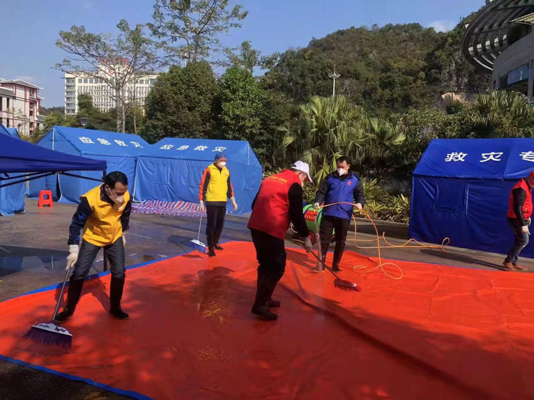 在奔赴德保县、隆林县前,南宁市星期六爱心公益志愿者协会组织召开了动员大会,动员大会上,说明了此次消杀志愿服务的重要性,并聘请专业消杀公司进行了系统、规范化的消杀流程学习和现场指导。2月中旬,正遇到几十年来少有的低温天气,志愿者服务队来到德保县后来不及休息,在参加完德保县疫情防控指挥部消杀工作布置会,全面了解了消杀区域的具体分布、进行了人员分工后,志愿者们立即展开消杀工作。德保体育馆方仓医院、新州一小、城关镇闽都花园等20多个重点的消杀场里,志愿者们冒着严寒进行消杀工作。 志愿者们举着水雾两用机、高压打药机、超低喷雾机,一干就是八九个小时,由于防护服密不透风,身上的衣服汗湿了,都来不及擦拭。志愿者们都说,保障人民健康是我们的职责,我们要仔细地对每一个角落进行消杀,不让病毒有滋生的机会。