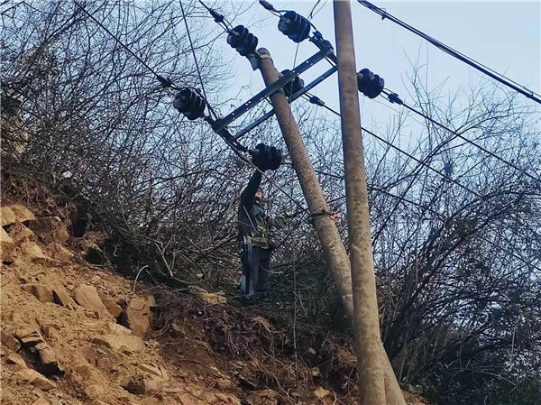 3月2日,该公司抢抓持续晴好天气,组织施工队伍开展现场抢修。为保障该片区百姓用电不受影响,通过低压发电车的方式满足百姓用电需求。15时30分,各小组按照职责分工,实施更换金具、绝缘导线、通道清理等工作。因滑坡面积较宽,土壤松动难以在原有位置立桩,线路通道走廊存在随时塌方的可能,该公司领导、安全稽查员在现场进行实时调度与督查,给予技术指导,通过架空线路绕过坡面的方式,排除隐患,严把安全关、质量关。眼看夜幕降临,冷风来袭,不时还有山石往下滚落,危险重重,但丝毫没能影响施工进度,队员们排除万难,经过24小时连续作战,顺利拔除隐患,恢复该线路安全可靠供电。