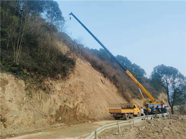 据了解,由于春节前夕阴雨天气连绵不断,1月29日上午,新合镇戴山水库附近突发山体滑坡,坡上戴山支线#46电杆倾斜明显,威胁线路稳定运行。由于坡面较陡,与地面几乎垂直,现场施工危险、难度极大,该公司经理周伟、分管领导王海在滑坡地段进行现场查勘,并及时向涌泉乡政府及区应急管理局汇报,研究解决办法。考虑到临近春节,为保障该片区百姓节日期间正常用电,在反复确认塌方地段通过对隐患电杆增加临时拉线,可短时期内满足安全运行,防止次生灾害发生,并安排人员一天两轮次现场巡视,确定在春节后择机全面消缺。