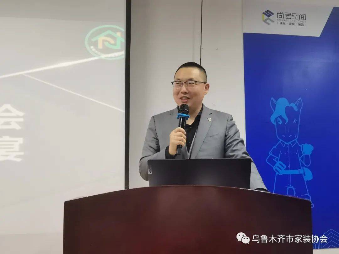 (新疆建筑材料行业商会常务副会长、乌鲁木齐大洋鸿基石业养护有限公司总经理刘洋) 乌鲁木齐市家庭装饰装修协会副会长、新疆尚层本色装饰工程有限公司执行总经理孙高峰在会上表示,家装行业有产业链、供应链、产业链,家装材料就在供应链上,好的家装离不开好的材料,希望参加本次大赛的材料供应商向业主展示、提供优秀的装饰装修材料,新疆尚层本色装饰工程有限公司也希望与优秀的装饰装修材料加深合作。